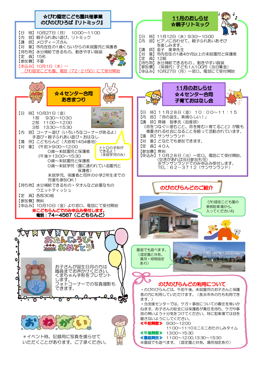 ◎ホームページ「のびのびらんど」でもお知らせしています。ご覧ください。