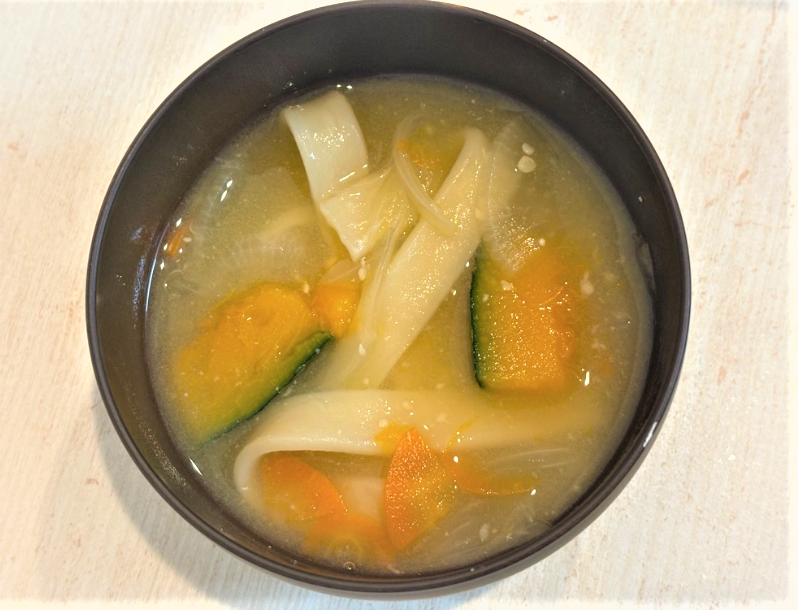 ※給食では汁物として提供しますが、ほうとう汁をメインとして食べる場合は、ほうとうの量や具材などをお好みで増やしてくださいね。