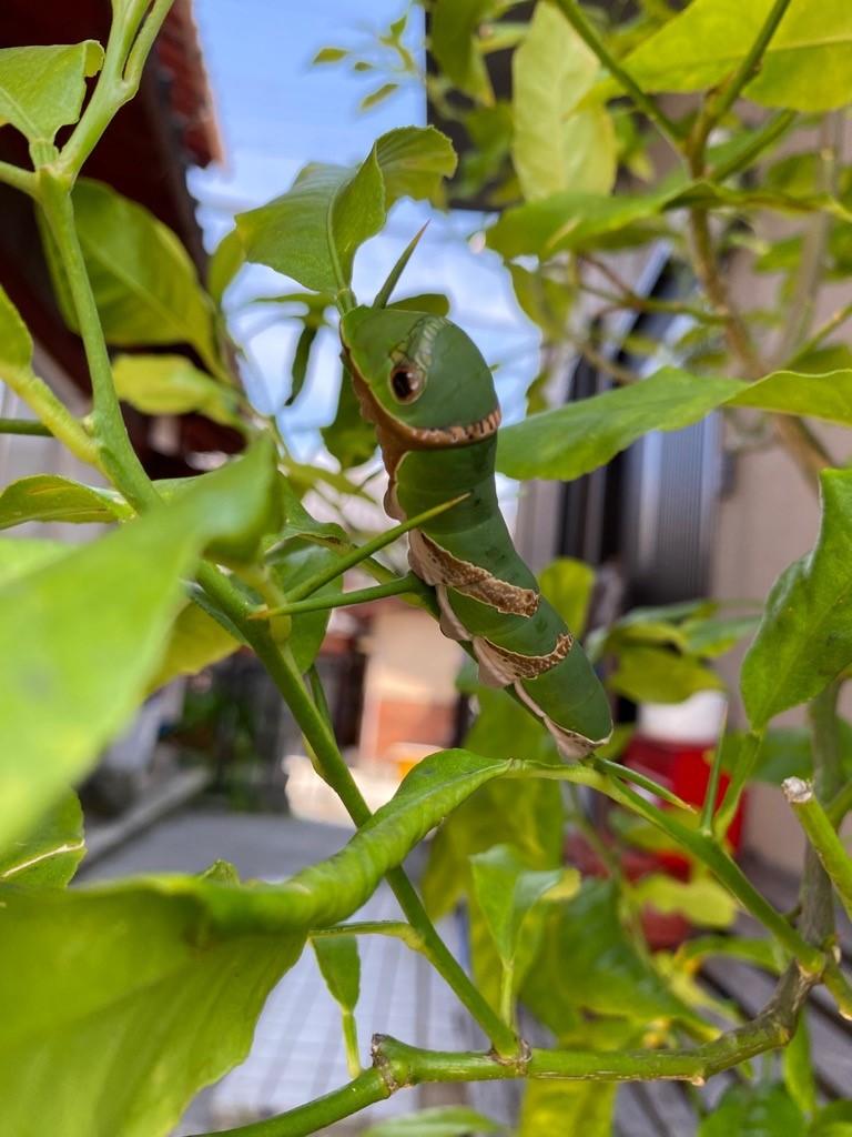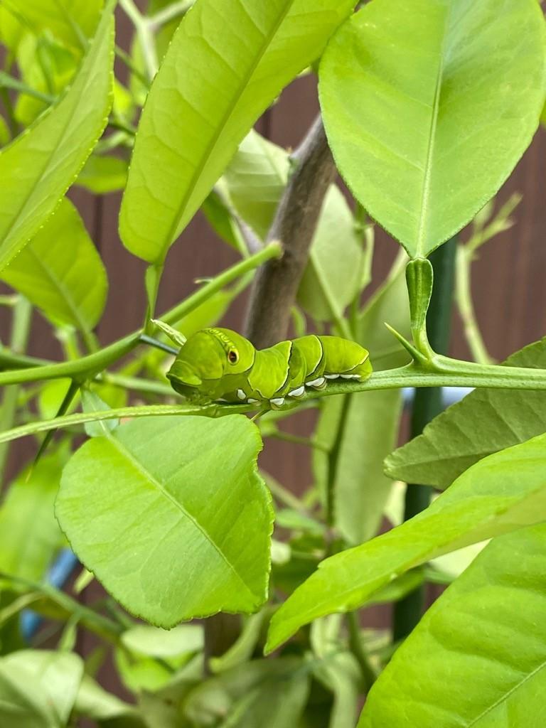 我が家のレモンの木をモリモリ食べて大きくなっています。