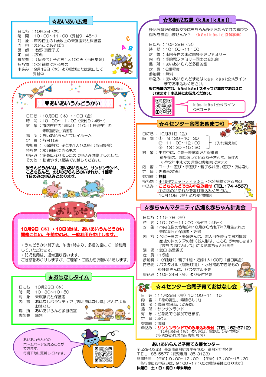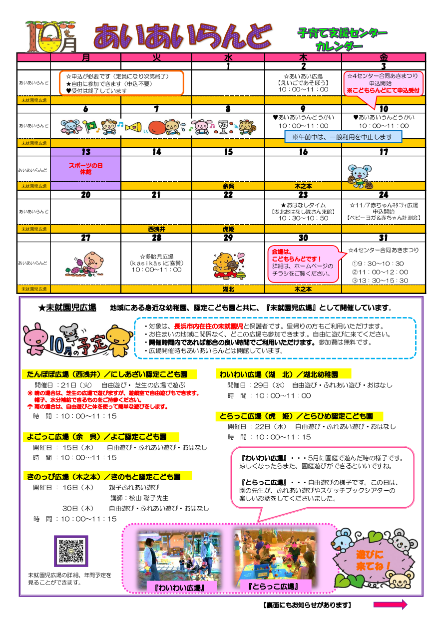 ◎ホームページ「あいあいらんど」「未就園児広場」でもお知らせしています。ご覧ください。
