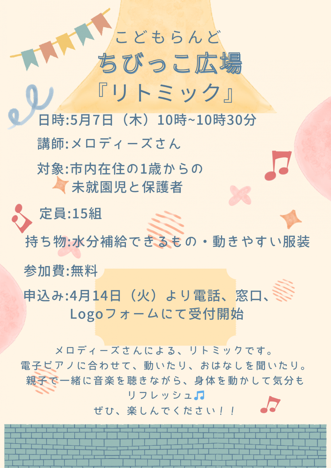 【申込み】4月14日(火)より電話、窓口、Logoフォームにて受付開始