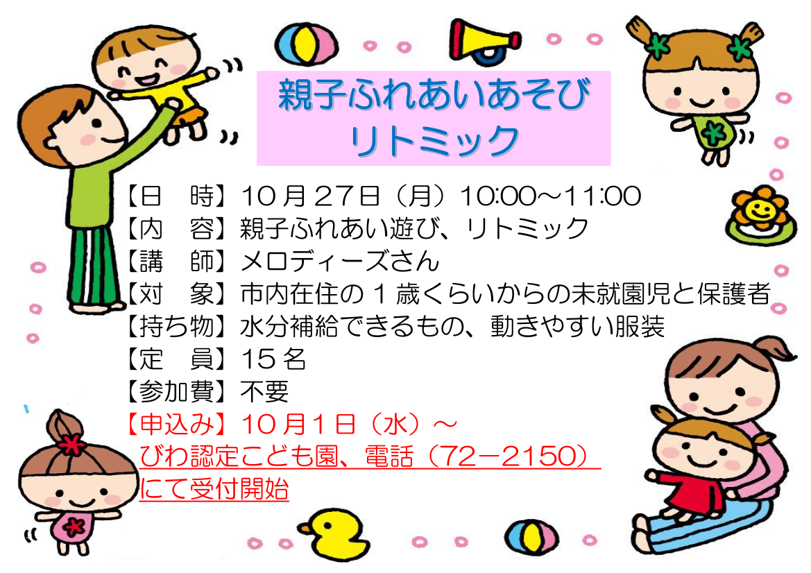 【対 象】市内在住の1歳くらいからの未就園児と保護者