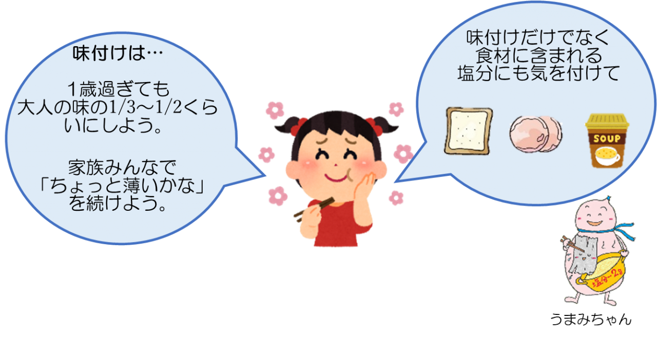 幼児の体は、まだまだ発達途中!薄味を続けることが、お子さんの味覚を育て、将来の健康的な食習慣に繋がりますよ。