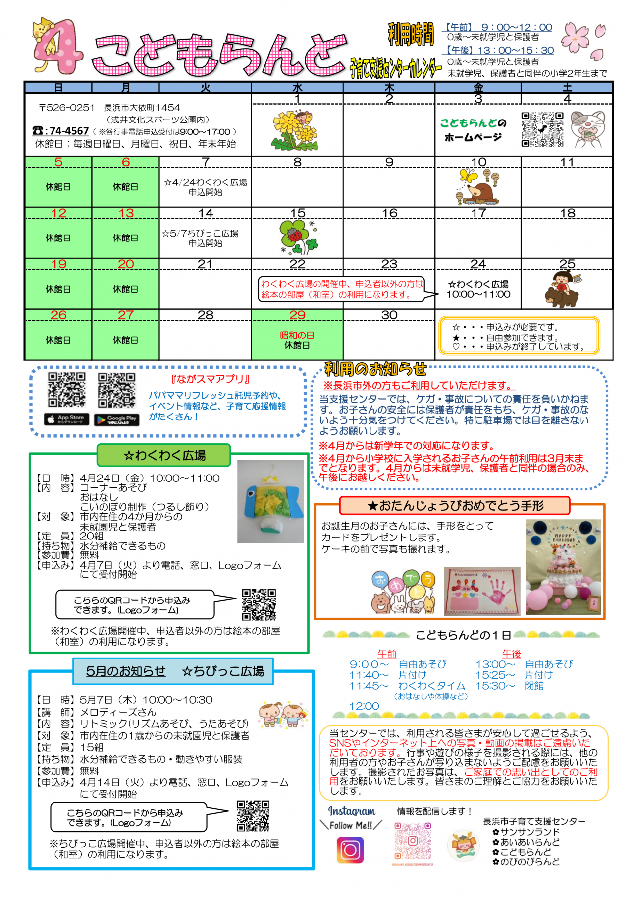 ◎ホームページ「こどもらんど」でもお知らせしています。ご覧ください。