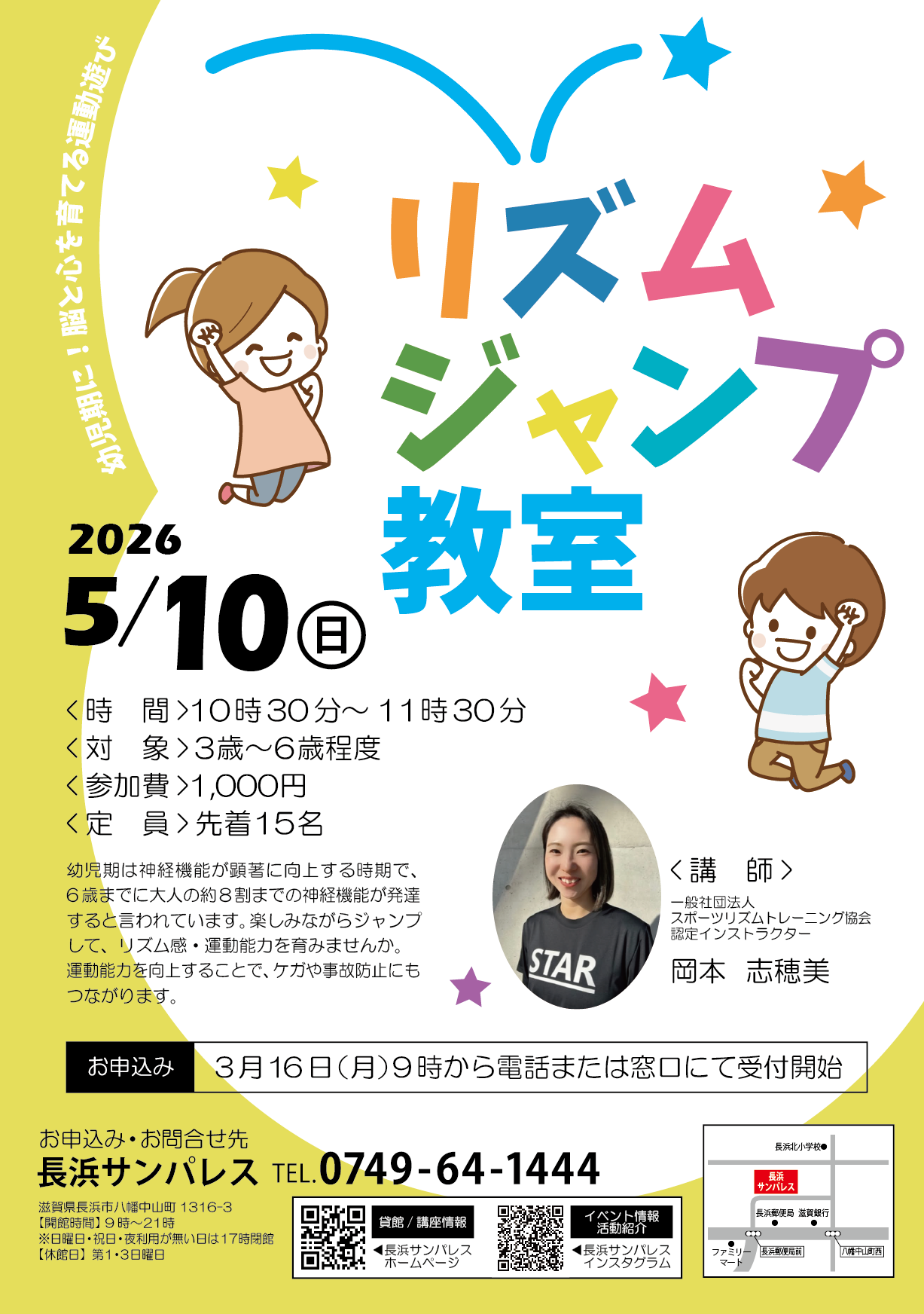 幼児期は神経機能が顕著に向上する時期で、6歳までに大人の約8割までの神経機能が発達すると言われています。楽しみながらジャンプして、リズム感・運動能力を育みませんか。