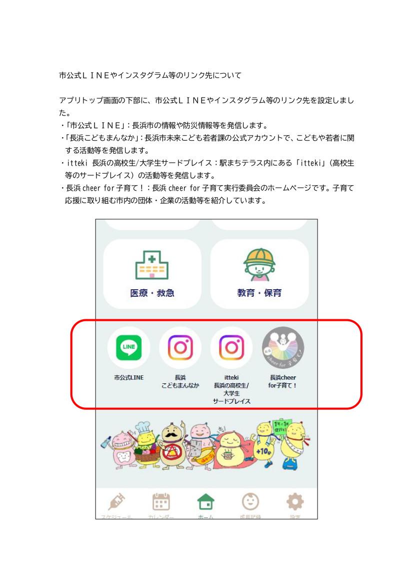 アプリトップ画面の下部に、市公式LINEやインスタグラム等のリンク先を設定しました。