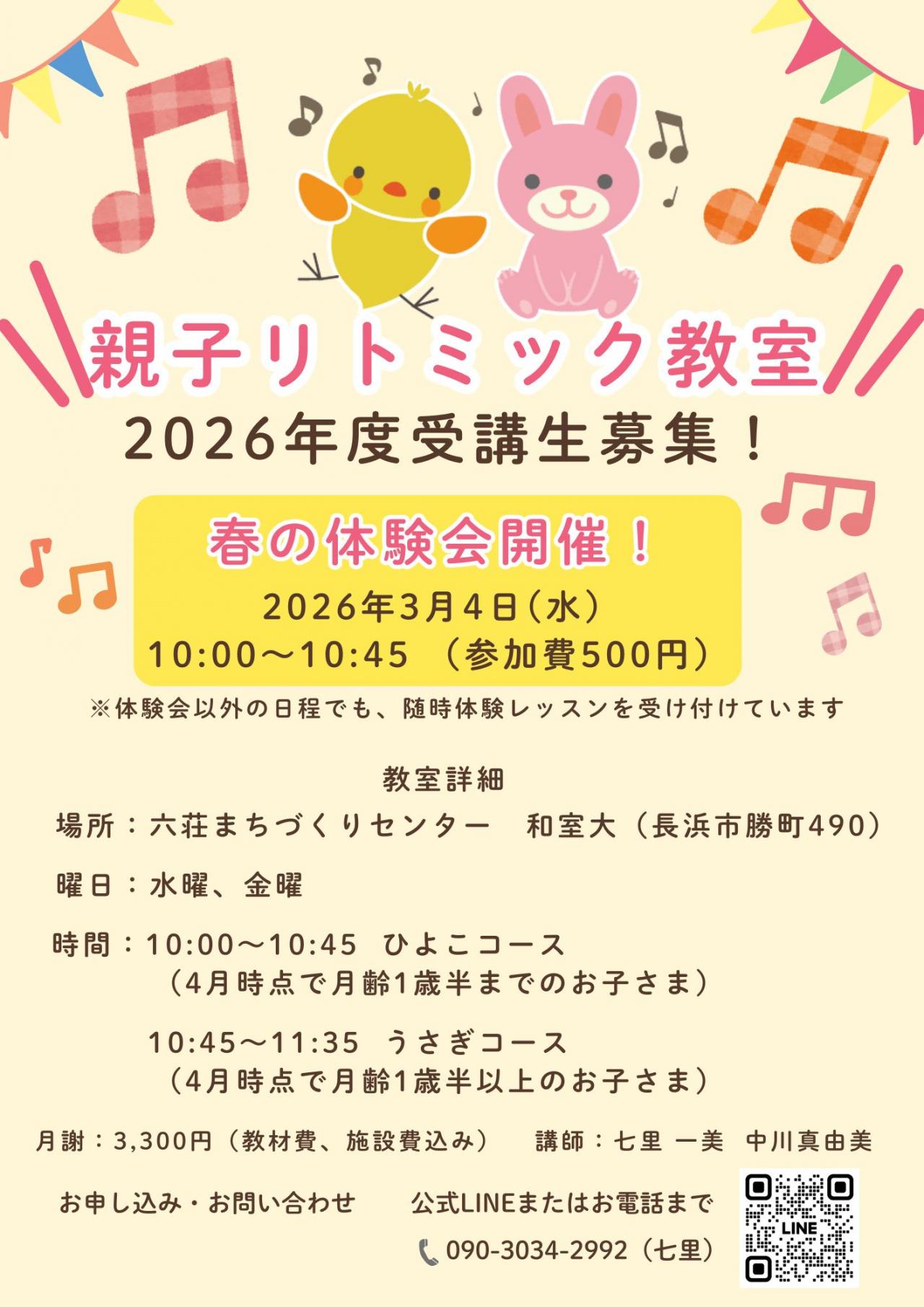 参加費500円で、ひよこ・うさぎ両コースの内容を体験していただきます。
